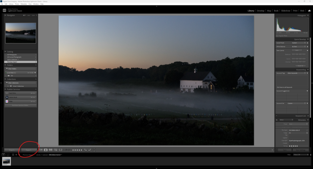 Step 3: Click Export Photo button and the Export menu will appear. Select the destination for your exported files, we recommend creating a file for your exported files. Once the destination is select click the Export Photo button to finish. Upload exported file to Digital Silver Imaging.